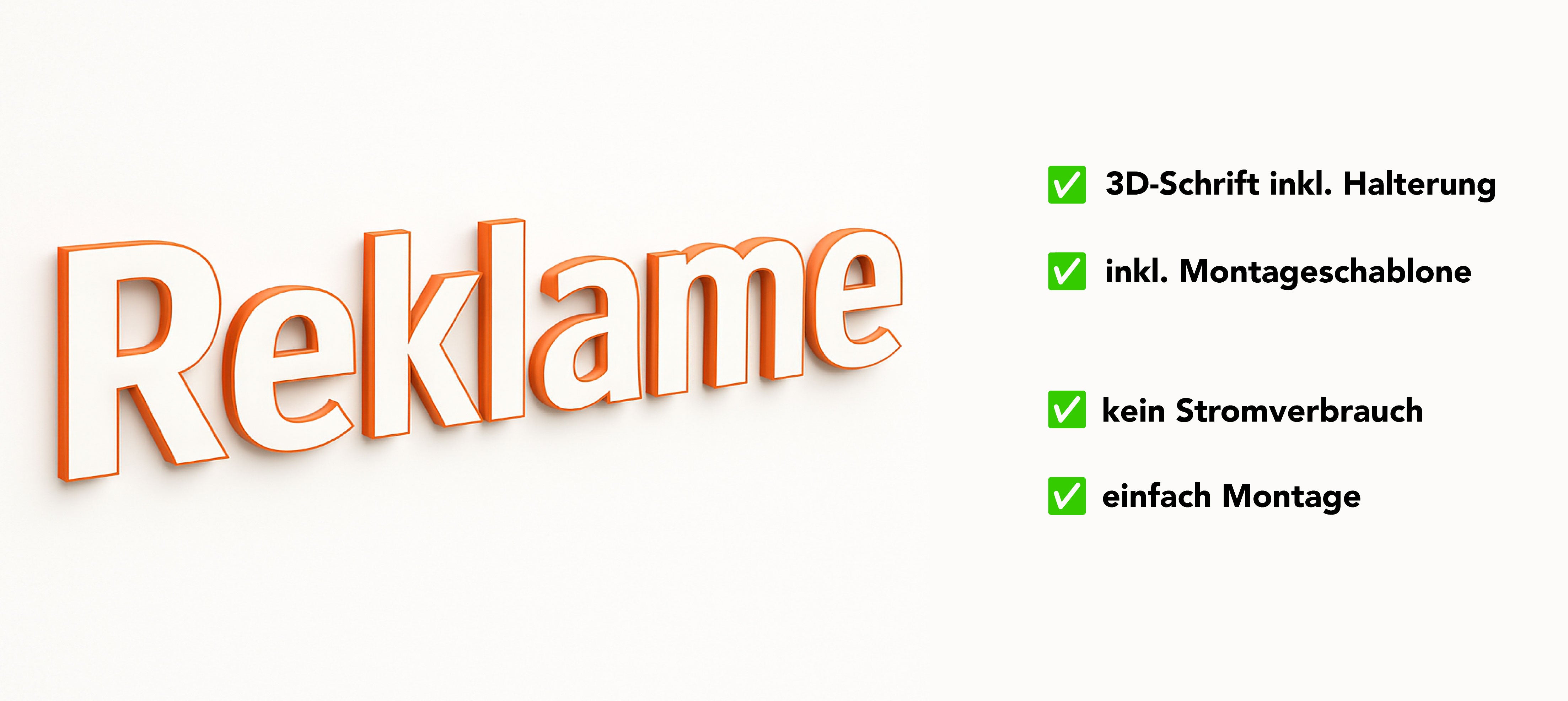Mit unseren 3D-Buchstaben setzen Sie Ihre Werbebotschaft oder Ihr Logo wirkungsvoll und unverwechselbar in Szene.